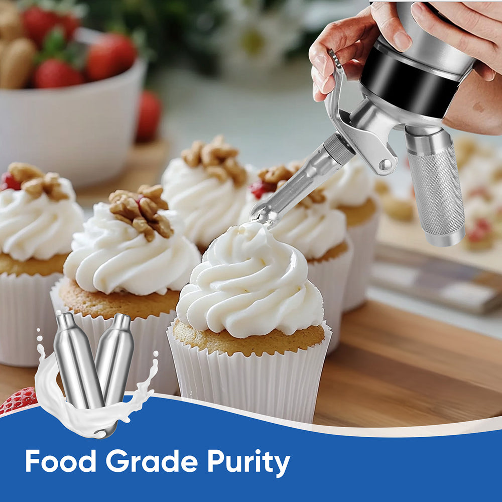 - Whipped Cream Chargers: N₂O dissolves in cream and creates a stable foam when released, giving whipped cream its fluffy texture.